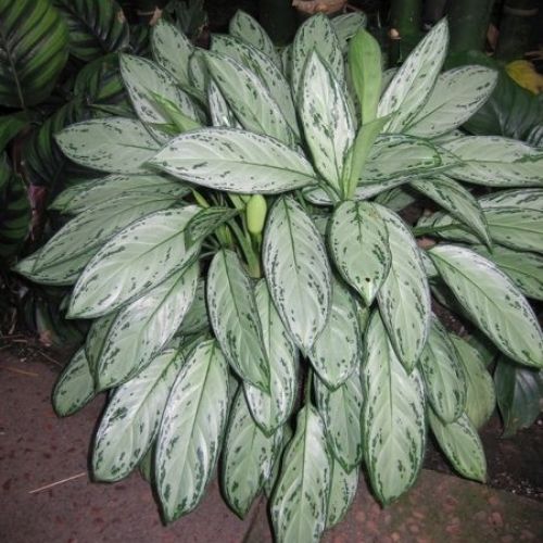 Aglaonema Silver Queen having ht. 30 cm to 45 cm. with 12 to 15 leaves, multi suckers, well developed, fresh, and healthy in 25 cm size of Earthen pot / Plastic pot.