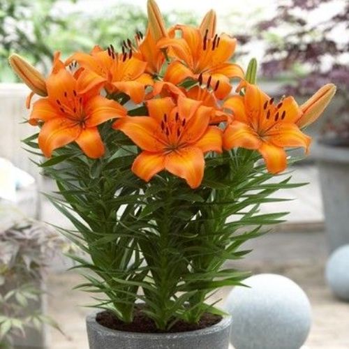 Providing and Displaying Asiatic lilly hybrid variety (3 in one) in each pot having in full bloom 3 to 5 flowers 30 to 45 cm ht. well developed in 25 cm Earthen Pot/Plastic Pot and as per direction of the officer-in-charge.