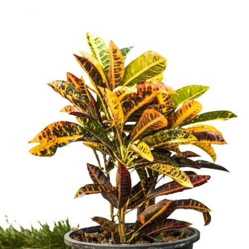 Croton Golden having ht. 45 cm to 60 cm with 2 to 3 branches, well developed, fresh and healthy foliage in 25 cm size of Earthen pot / Plastic pot