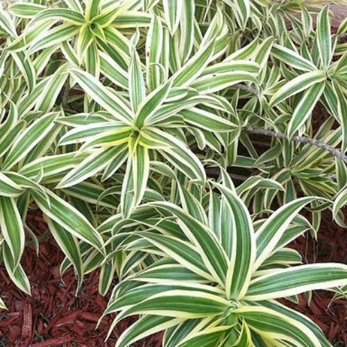 Dracaena ‘Song of India’ variegated having ht. 30 cm to 45 cm, well developed, fresh & healthy foliage with bright leaves in 20 cm size of Earthen pot / Plastic pot.