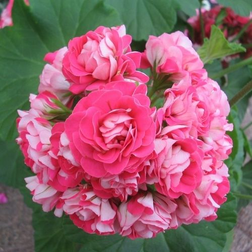 Geranium double variety having 30 cm ht., in different colour well developed with fresh & healthy foliage (3 in one) well bloomed in 25 cm Earthen Pot/ Plastic Pot.