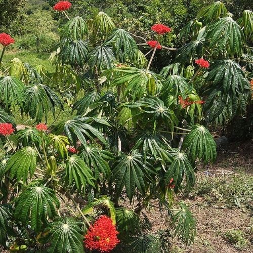 Jatropha multifida (red colour) of height 45-60 cm. with 2-3 branches in earthen pot of size 20 cm.