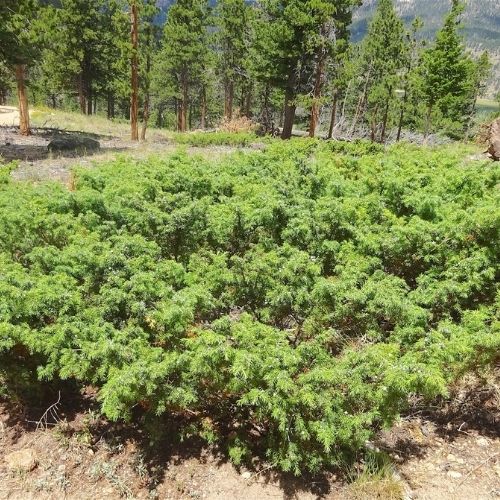 Juniperus prostrata with 5 to 6 latral branches and green foliage in 20 cm size of Earthen Pot / Plastic Pot.