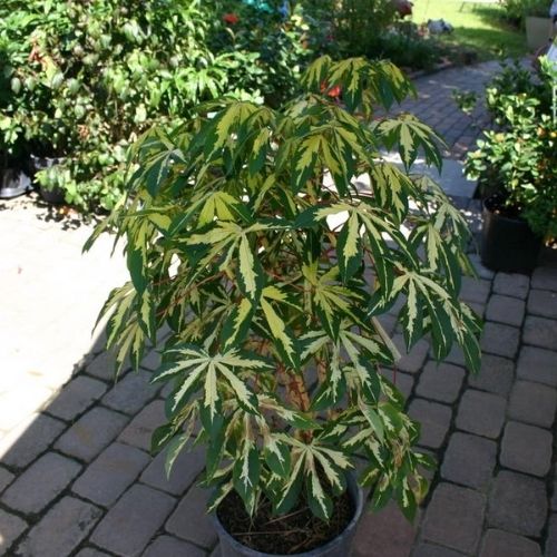 Tapioca variegated (Manihot esculenta) well developed fresh & healthy 30 to 45 cm ht. in bright colour foliage in 25 cm Earthen Pot/Plastic Pot.